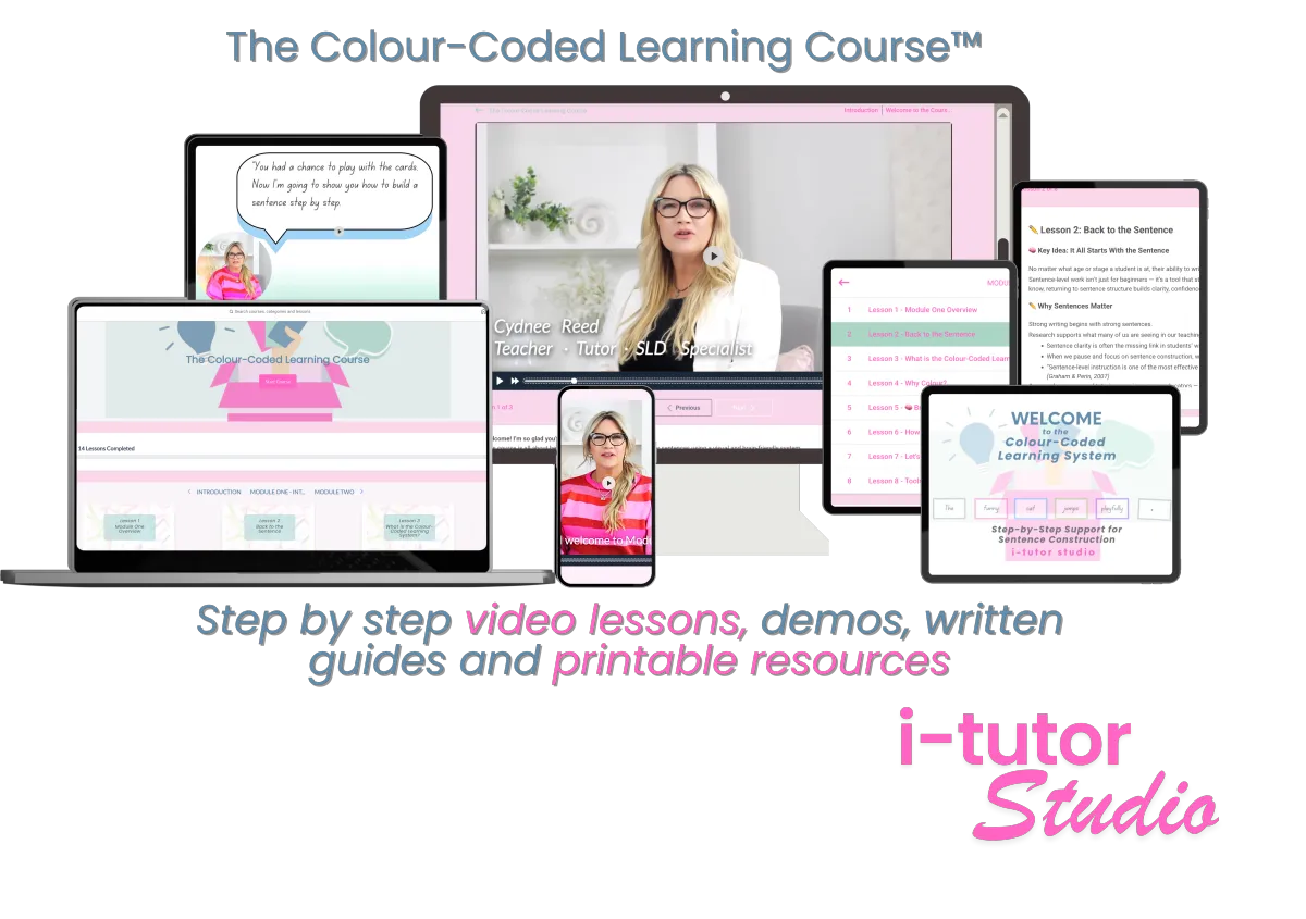 With its visual layout and brain-based design, the Colour-Coded Learning System helps students understand how sentences work - and gives educators the tools to guide writing step by step.